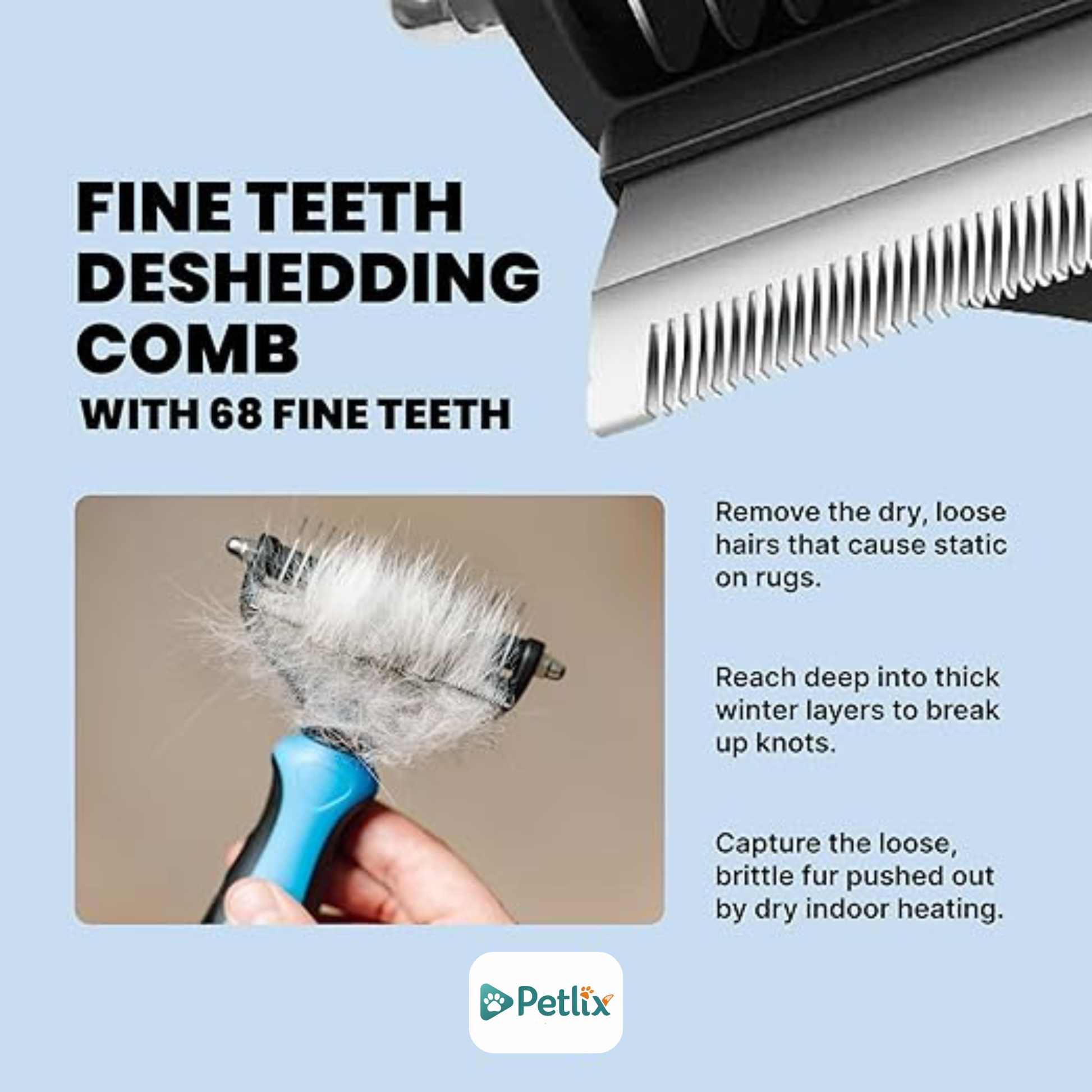 🐶 Dual‑Side Design – Fine & wide teeth for all fur types.
